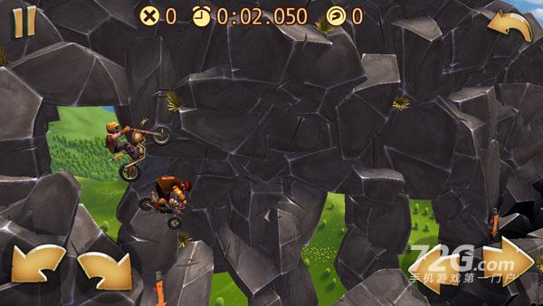 这游戏的操作说起来非常的简单,右手控制油门和刹车,左手控制摩托车的重心。看上去非常简单但玩起来却困难十足。而且在操作上的手感比较奇怪的是在调整人物重心时玩家点击之后人物会一直处于前压或者后压的状态,而不是那种松手就回到原来的位置,这个设定与同类游戏比较相异,玩家们也需要注意。