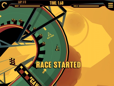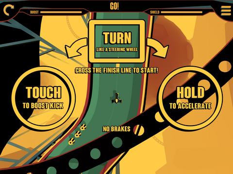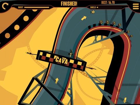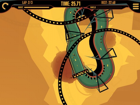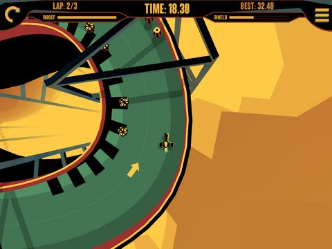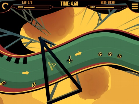 游戏的玩法看起来非常简单,重力感应系统控制着飞船的方向转动,在依靠屏幕左右两边的火箭喷射装置进行飞船的推动,完成围绕太空赛道三圈的狂飙,但就是这短短的三圈就能够让人向一个无头苍蝇一般不断的乱转,无论是倾斜屏幕控制方向,还是点燃推进装置前进都非常地难以保持稳定的控制,真真实实的来了一回太空飙车的体验了。