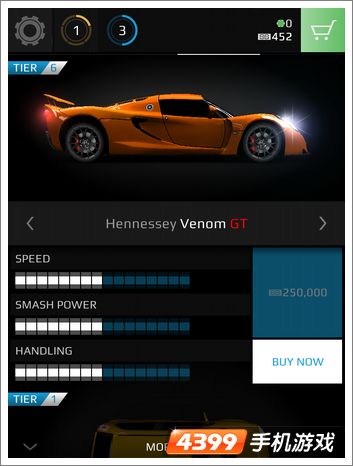 飙车飞盗的赛车一共分为六个等级,等级越高的车性能就越好,但是随之的价格也是越高,所以小伙伴们要在游戏中努力赚钱啊。