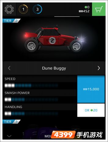 这是等级2的第二款车型,小型的沙漠越野车,速度和力量均衡,也是不错的选择,而且价格也不贵。