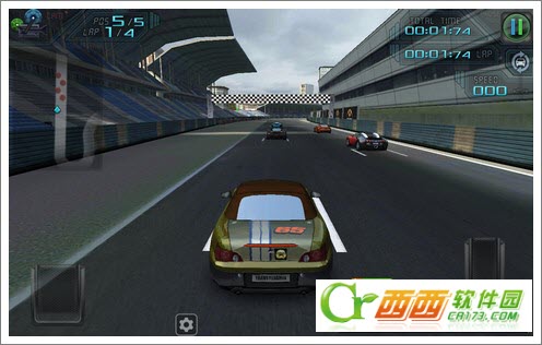 简单的游戏操作,跟同类的赛车游戏差不多,由两大经典操控方式:重力感应和虚拟按键相互配合而成,大家左右摇晃设备利用重力感应原理,来控制赛车左右移动位置来超车,而左右按键,跟真实中的赛车一样,左边是刹车右边是油门。