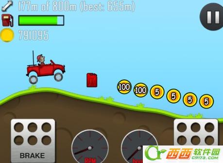 爬山赛车(Mountain Climb Race)是一款休闲赛车游戏,玩家需要驾驶一辆赛车跑在山地上,由于山地非常颠簸,需要玩家很好的把握油门和刹车才行,不然很容易翻车。沿途可以收集金币,用来改造车子。