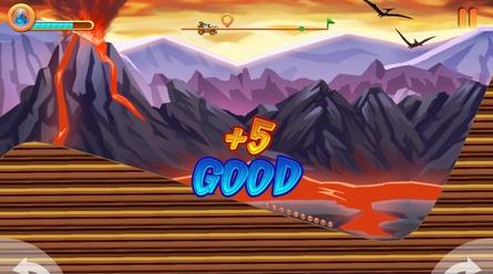游戏的操作非常简单,玩家不需要关心车辆的速度,只需要用屏幕下方的两个按键控制车辆前倾和后仰来转换重心即可,不过在某些时候需要反其道而行,用重心旋转来做空中特技,在空中旋转,并且这样会得到高评分哦。操作并不难,难的是控制汽车在空中的重心及翻转,可要小心哦,不然车会爆炸的。