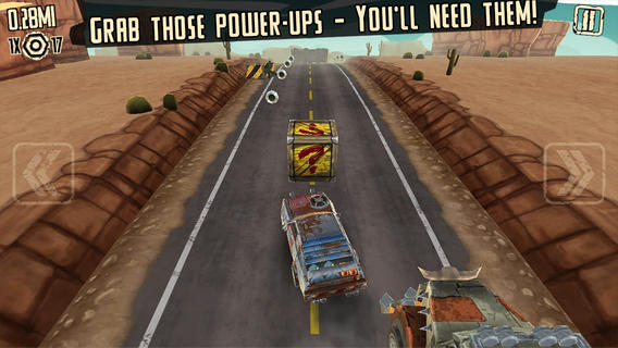 这是一场开着赛车大逃亡的游戏,美国西部大范的游戏画面,让大家过足了大片儿主角的瘾,打破传统的特色操控,加上一路上不断的障碍,考验着玩家的敏捷度。