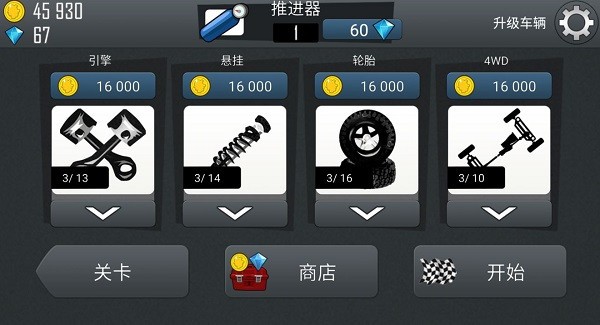 购买升级装备和提升车辆性能,增加游戏的可玩性和挑战性。