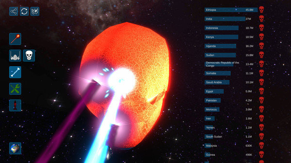 星球毁灭模拟器2是一款由Realmforge Studios开发的模拟游戏。在游戏中,你将成为一颗星球的统治者,运用策略、智慧和力量来引导星球的发展,同时面对各种挑战和危机。这款游戏融合了策略、模拟经营和随机事件,为玩家提供了一个别具一格的宇宙探索体验。游戏中的模拟要素并非一成不变。相反,你将遇到各种随机事件,如地震、瘟疫、外星人入侵等。这些事件将影响星球的生态系统和社会发展,为游戏增添了更多的不确定性和挑战。